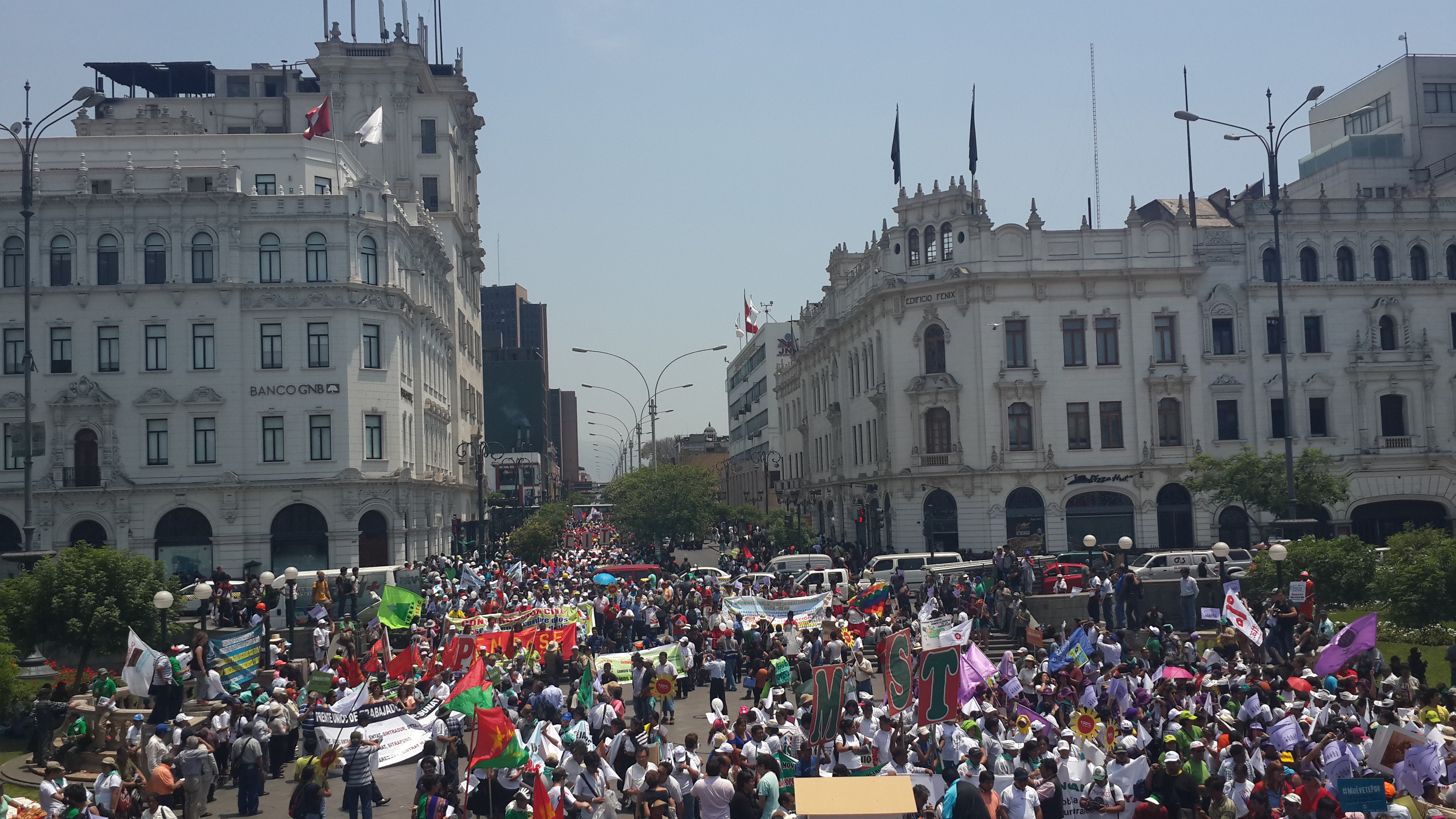 Diversas organizaciones ambientalistas, sindicales, indígenas, estudiantiles, juveniles, de mujeres, de trabajadores y de mineros de Perú y de otras partes del mundo, se manifestaron bajo la consigna “cambiemos el sistema, no el clima”.