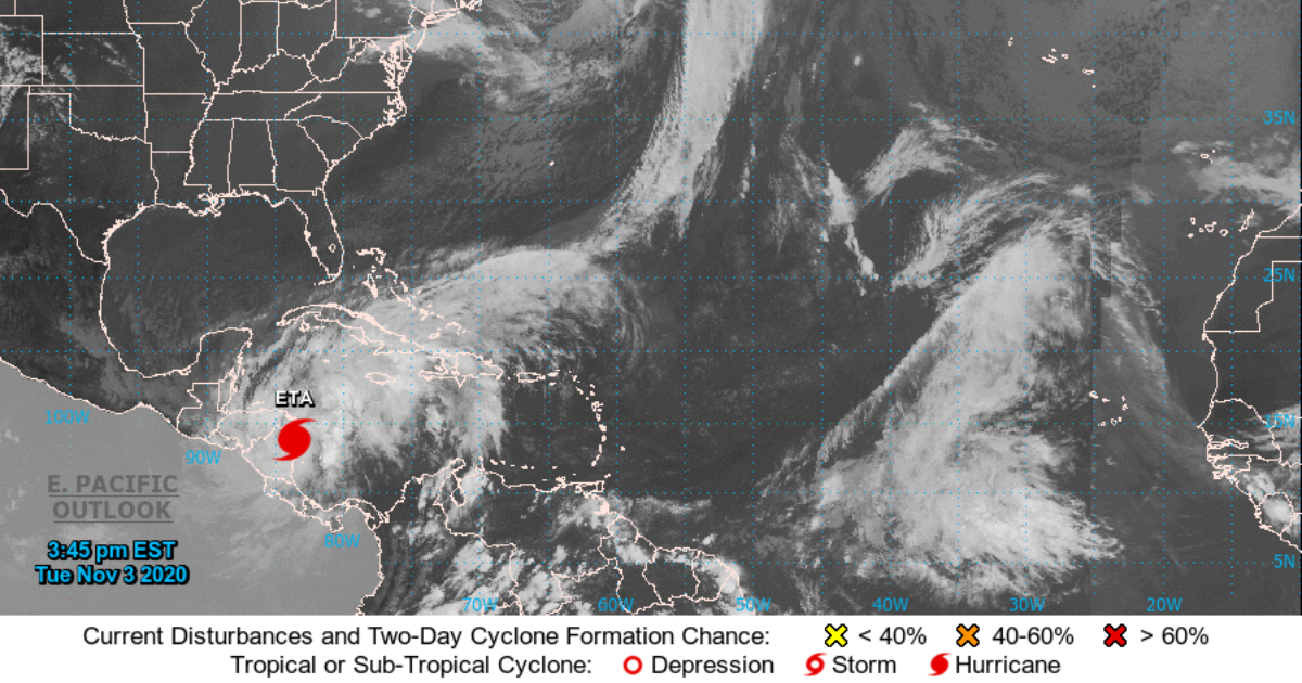 El Sistema Nacional de Prevención y Atención de Desastres (Sinapred) y el Instituto Nicaragüense de Estudios Territoriales (Ineter), informaron la mañana de este martes que, el huracán ETA estaba al borde de tierra a 35 km al sureste de la ciudad de Bilwi.
