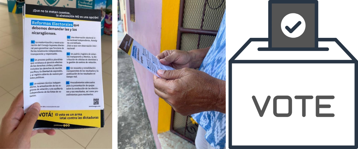 AUN informó que han repartido volantes en buses y en diferentes municipios del país, en el que explican cuáles son las reformas electorales que deben garantizar las condiciones para un proceso electoral creíble. Entre las reformas se menciona la observación electoral y el cambio de magistrados del Poder Electoral.