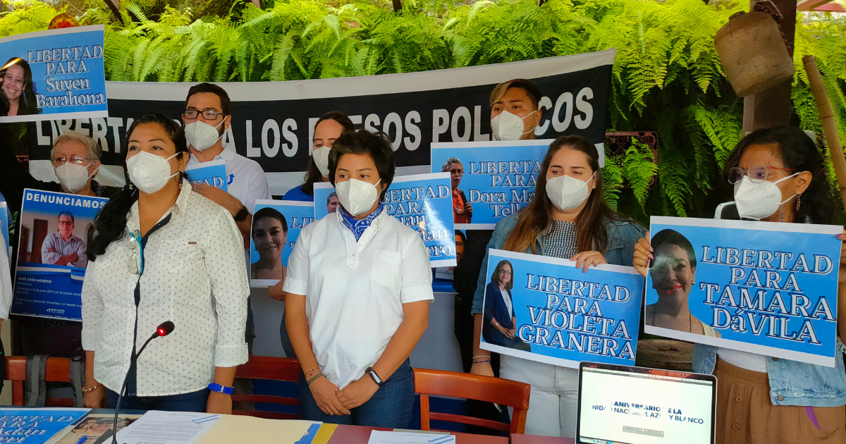 “A lo largo de tres años como organización hemos padecido la persecución y la represión de la dictadura. Es ilegal el secuestro de 14 líderes nuestro: Félix Maradiaga, Violeta Granera, Tamara Dávila, Dora María Téllez, Ana Margarita Vijil, Suyen Barahona, Hugo Torres, Víctor Hugo Tinoco, José Antonio Pereza, Roger Reyes, Alex Hernández, Irvin Larios y Yader Parajon”.