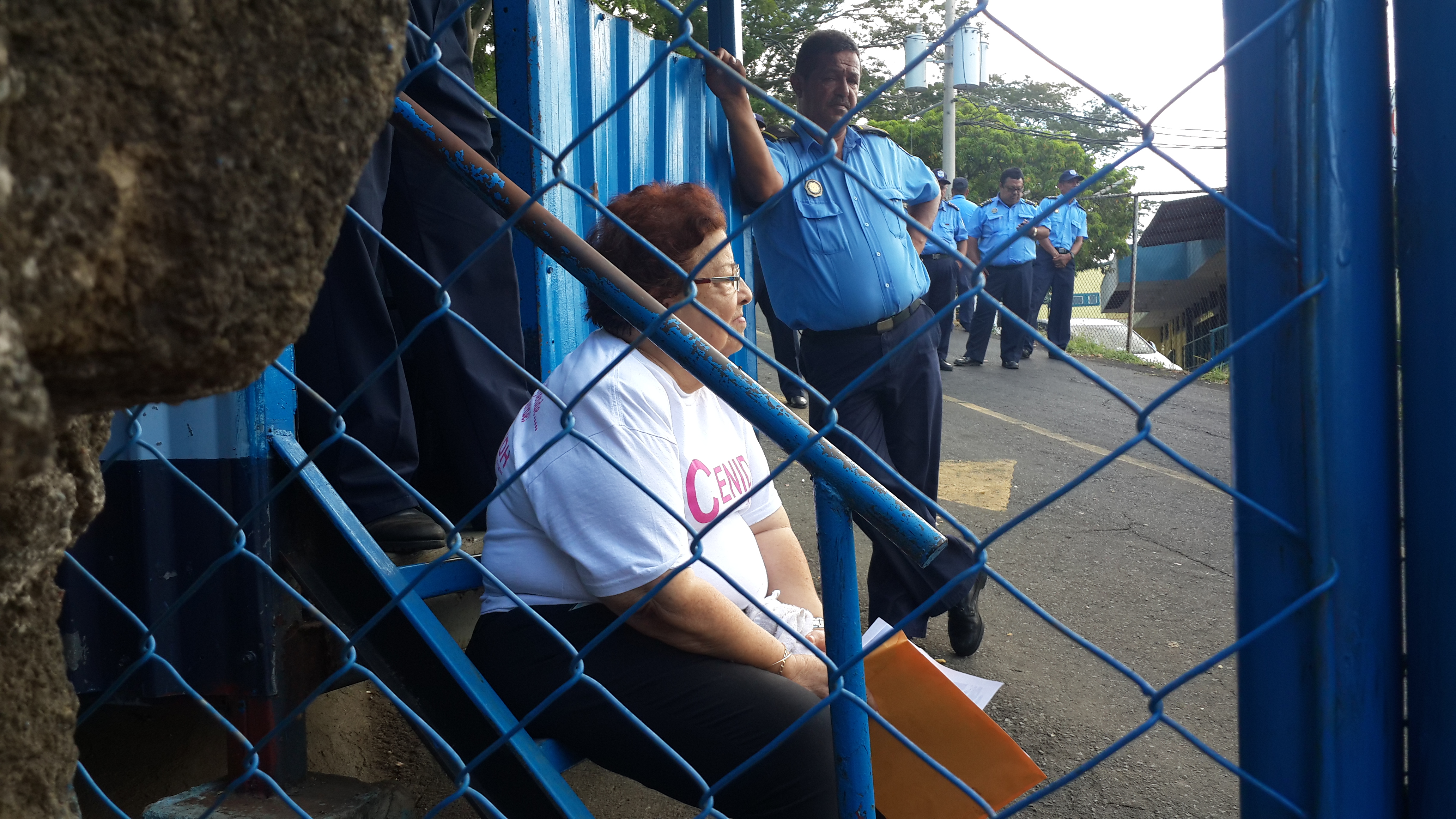 Juanita Jiménez del Movimiento Autónomo de Mujeres declaró a Onda Local: “venimos aquí y dos oficiales dijeron que tenían orden de no recibir nada”. Vilma Núñez, presidenta del Centro Nicaragüense de Derechos Humanos, Cenidh, entró a las instalaciones de Auxilio Judicial e inmediatamente “se dejó venir la policía” y los oficiales colocaron una valla.