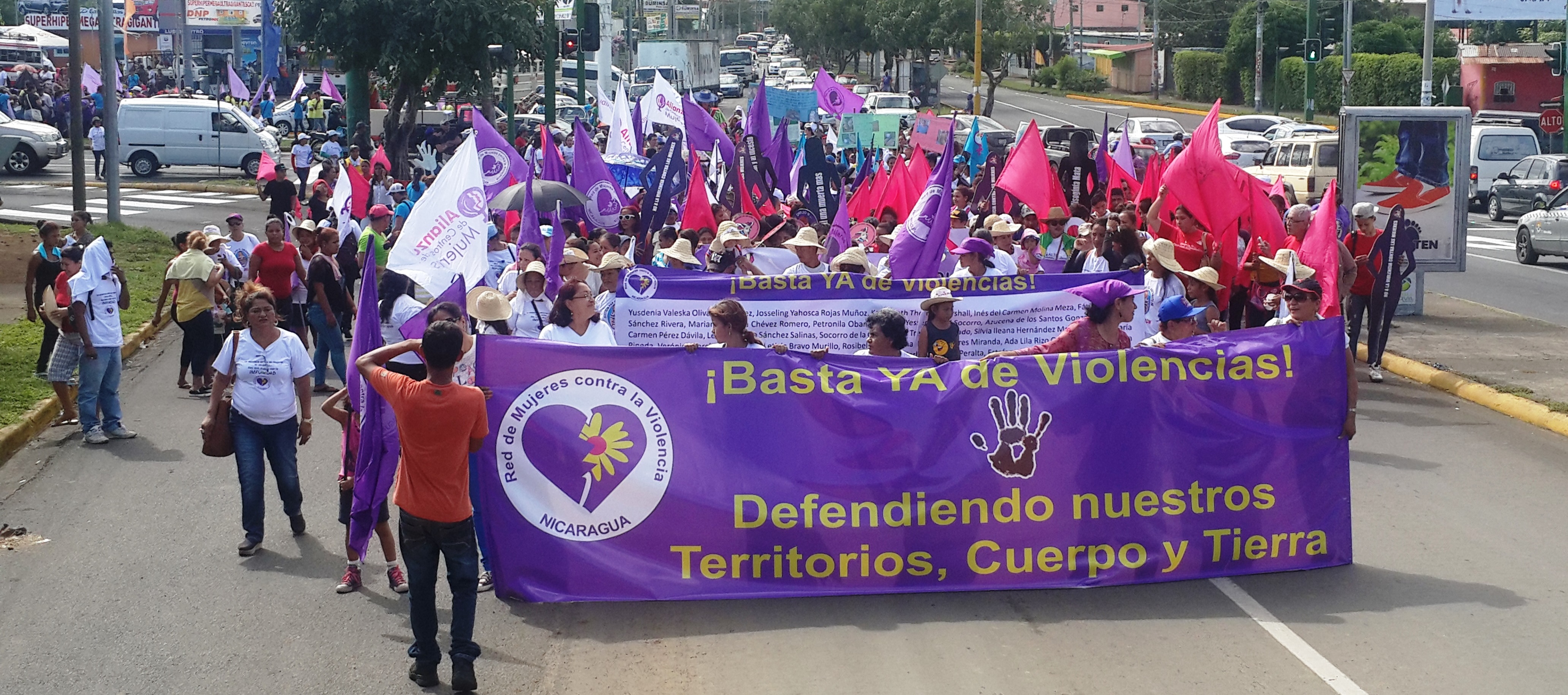 Organizaciones y redes de mujeres nicaragüenses marcharon hacia la Asamblea Nacional para conmemorar el 25 de noviembre, día internacional de lucha contra la violencia hacia las mujeres y para denunciar las violencias contra ellas.