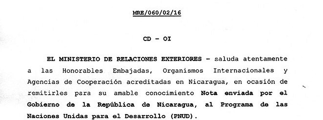 En su comunicación destaca que el PNUD ha sido un socio de Nicaragua desde el año 1978 y ha trabajado de cerca con gobiernos de todo espectro político en un espíritu de colaboración para mejorar las vidas de mujeres y hombres nicaragüenses de todo el país. Destacó que ha movilizado sumas importantes de financiamiento de desarrollo y unos $270 millones de dólares para apoyar a más de 115 proyectos en los últimos 12 años.