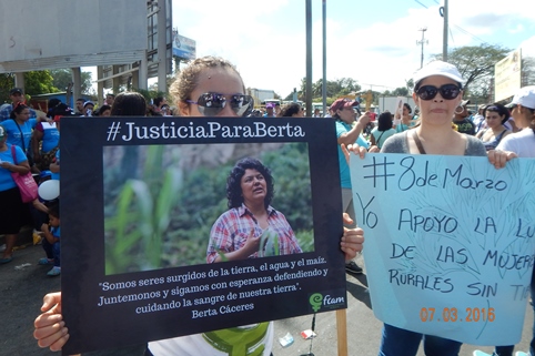 Un ocho de marzo dedicado a Berta Cáceres, hondureña y líder de la comunidad indígena lenca y defensora de los derechos humanos y del ambiente, asesinada el tres de marzo en su casa por denunciar sistemáticamente a las empresas transnacionales.