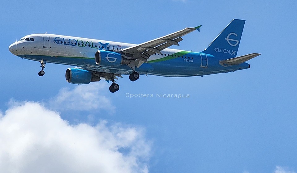 Airbus A320-214 de la aerolínea Global X en su ruta desde la base militar Guantánamo a Managua. • Foto: Spotters Nicaragua