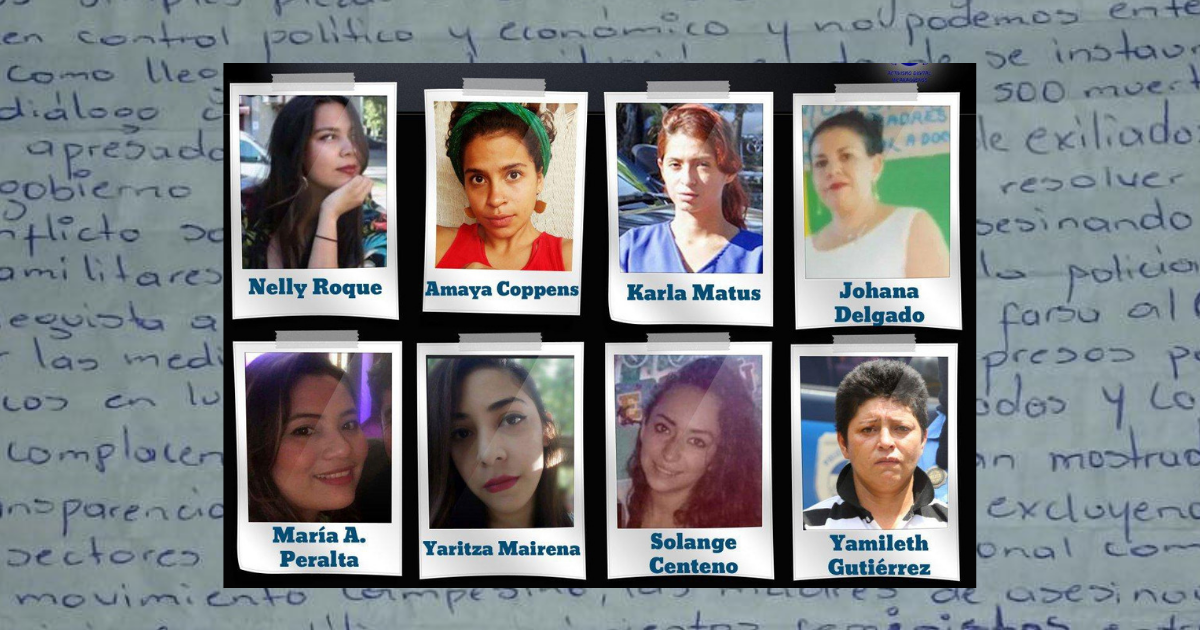 Las presas políticas Nelly Marilly Roque Ordoñez, Amaya Coppens, Yaritzha Rostrán, María Peralta Cerrato, Jamileth Gutiérrez, Solanghe Centeno, Johana Delgado y Karla Matus informaron a través de una carta que llevan siete días en huelga de hambre.