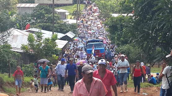 Llegaron a caballo, en bote y en balsas. Algunas personas salieron desde horas de la madrugada, otras desde el día de ayer, ya que la distancia entre comunidades es de cuatro a cinco horas. Las dos mil personas marcharon desde el puente colgante de la comunidad Polo de Desarrollo, Punta Gorda, hasta el cuadro de beísbol del poblado, realizando un recorrió de un kilómetro.