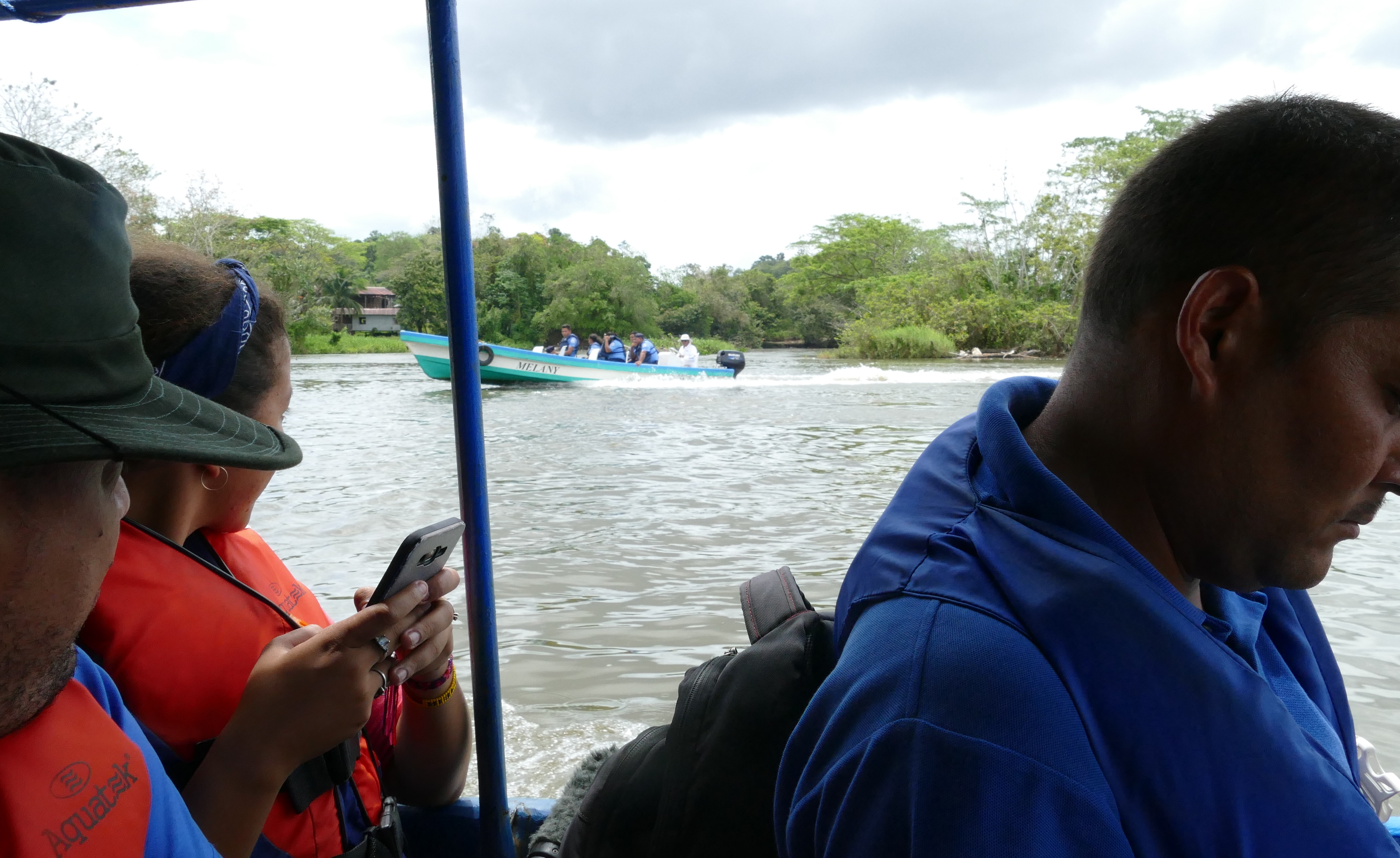 Tomamos una lancha de regreso a San Carlos. Después de pasar Boca de Sábalos nos dimos cuenta que una lancha nos seguía, era los policías. No podían ni disimular, parábamos para ver las reacciones y ellos lo hacían también.